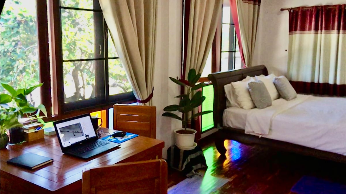 Premium river view in your room, place is in heart of Chiang Mai city. Location very convenient with 5-10 minute walk from villa to bus and car transportation, food, fruit and flower market, restaurant and drugs store. Also, facility in side the room have air conditioning in bedroom, dining table, sofa, smart TV, mini kitchen, sink, microwave, refrigerator, washing machine, fan, private bathroom, balcony and car park. Experience from villa by walking to market touch local life, buy local food.