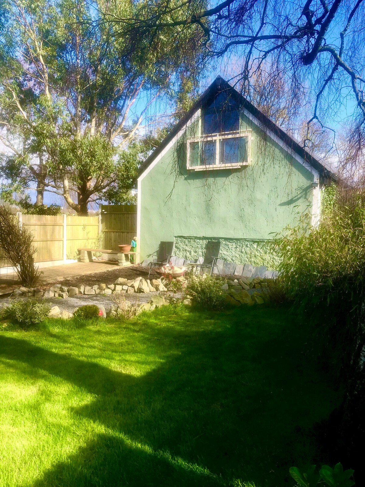 陽光明媚的庭院小屋
