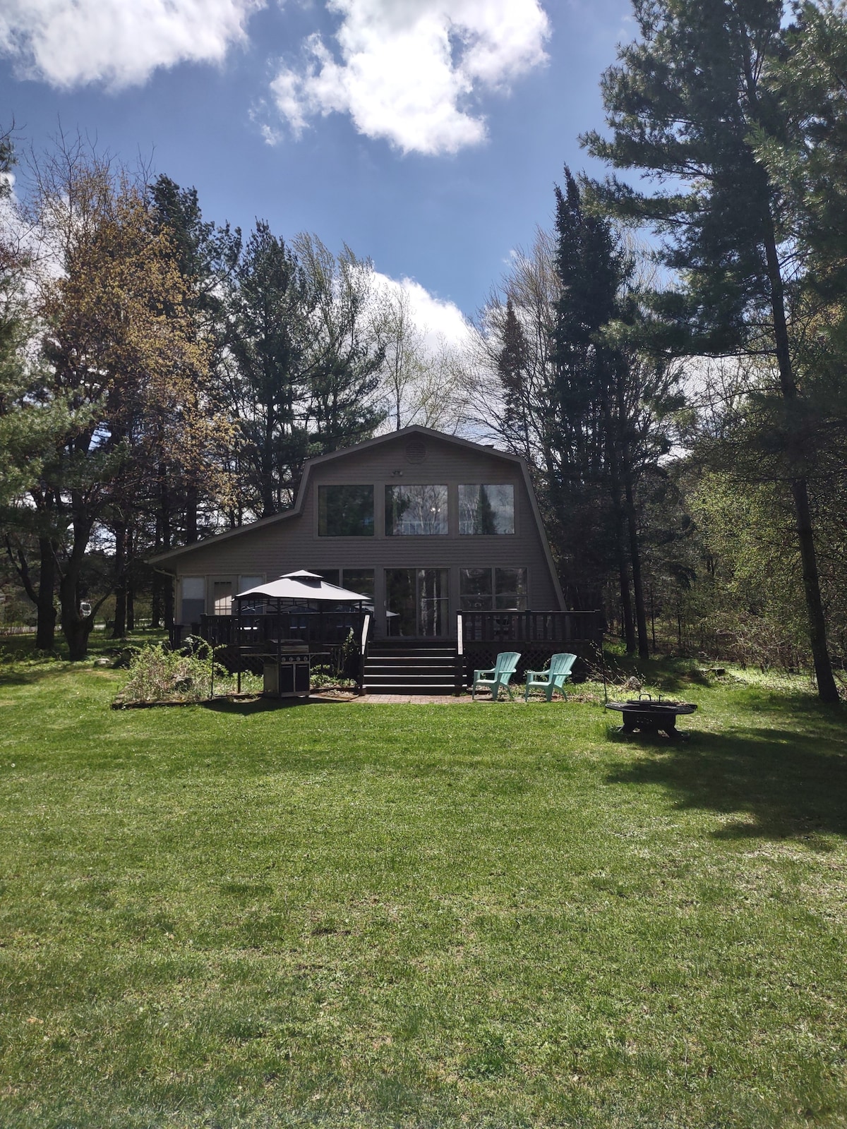 We’re located just outside of town with easy access to all that the beautiful Waupaca area has to offer. Only 10 minutes from the Chain! The property is surrounded by Maple and Oak mature forest yet has an open meadow perfect for picnics and star gazing. It is beautiful here; you can rest and recharge close to nature. Adventure Outpost is totally updated and designed for your comfort and convenience. The space is cozy, light and refreshing and big enough for the whole family!