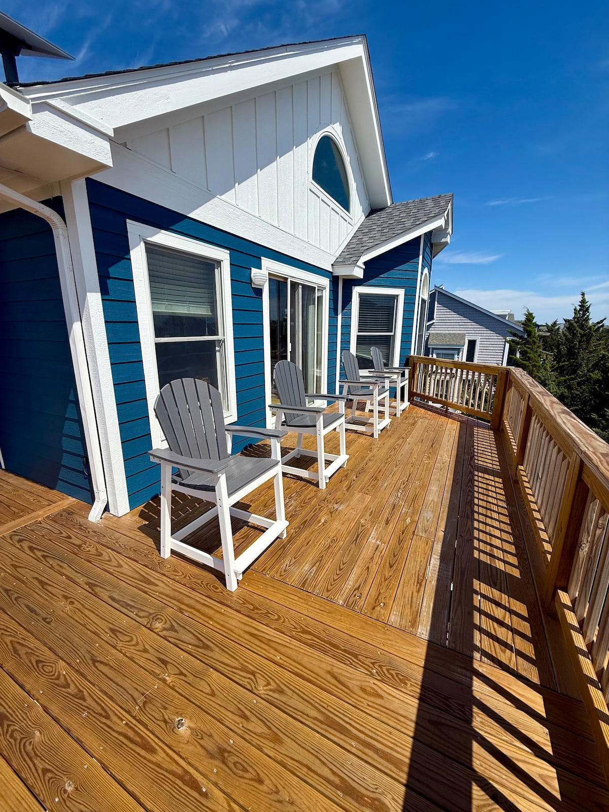 Discount avail for extended stays Enjoy this cozy beach house, walking distance to the Atlantic Ocean and Pamlico Sound. Perfect for beachgoers, kiteboarders, water sport enthusiasts, or holidays with families and friends. Inside, you'll find two living rooms, one with pool table and bar. Large screen TVs with premium cable and surround sound in each. Enjoy stargazing while relaxing in the hot tub on the deck. Located in the tri-villages, close to dining & shops.