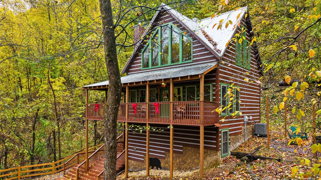 Tall Timbers 是一間私人木屋,坐落於韋爾斯谷 (Wears Valley) 佔地半英畝的林地上,地理位置優越,位於湯森鎮 (Townsend) 和皮傑恩福吉 (Pigeon Forge) 之間,距離大煙山國家公園 (Great Smoky Mountains National Park) 只有幾分鐘路程。 可容納 6 人入住,設有兩間配備特大床的睡房以及一張沙發床。 按摩浴缸、營火炉、桌球桌、無邊遊戲桌、燃氣壁爐、設有搖椅的環形門廊,以及設備齊全的廚房,一切待你享用。