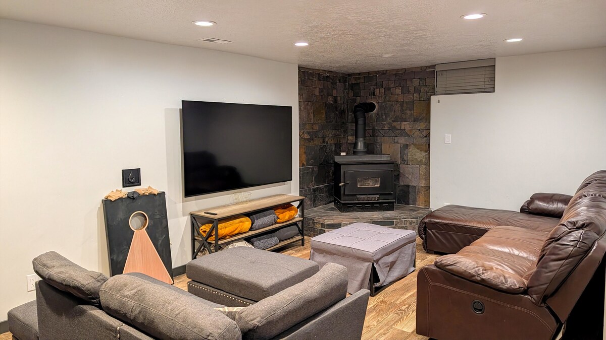 Get out & play at the ALL TUCKED INN—NEW & IMMACULATE, with easy freeway access and great views! Near ski resorts, lakes, downtown Ogden, Weber State University & SLC. Just 5 minutes to mountain hiking/biking. Close to unique restaurants, retail & entertainment. Fully equipped kitchen, library, games, big-screen theatre, popcorn & patio. Private washer/dryer & office space. Sleeps 7+, in a 3 bedroom, 1 bath suite, located in upscale neighborhood (basement suite only; On-site hosts>easy contact).