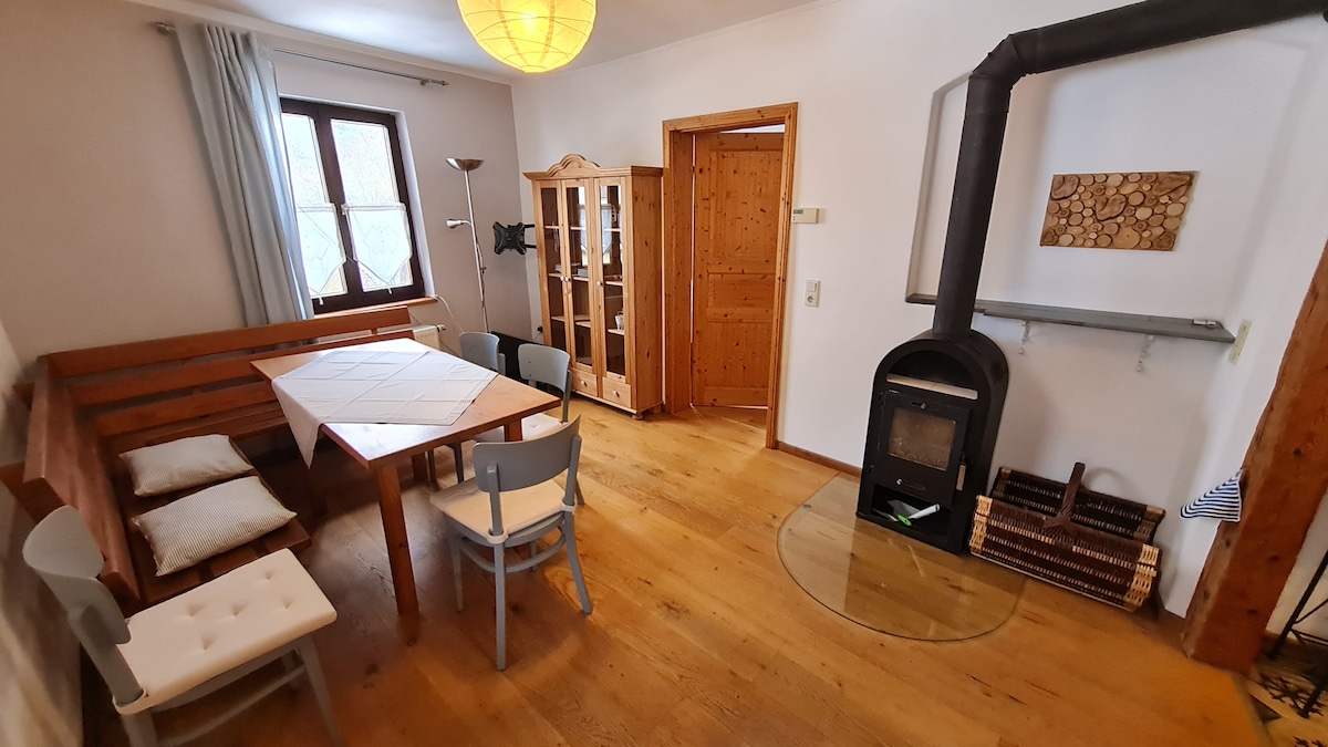 50 平方公尺公寓,位於 2 樓 樓上有開放式睡眠區 瑞典火爐、電視、Wi-Fi 配有洗碗機和大餐桌的廚房 提供碗碟、手巾和浴巾 床 1.60x2 公尺,包括床單 沙發上可額外睡一個人 房子前面有自己的停車位 村內有商店(EDEKA、麵包店、肉店);村內有鄉村旅館和披薩店 距離紐倫堡/雷根斯堡 50 公里;每小時都有火車 附近有標誌的徒步路徑 五河自行車道直接經過房子