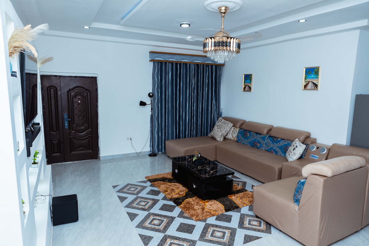 Elegant Comfort in this fully furnished Ground Floor, Airbnb apartment, designed to make your stay unforgettable. Conveniently located on the N1 Road, along the Accra to Cape Coast Road, adjacent to Eddy's Pizza at Old Weija Barrier. We are just 5-7 minutes from West Hills Mall. 30 minutes from Bojo Beach. 45 minutes from the International Airport to Lifestyle Airbnb Apartments GH.