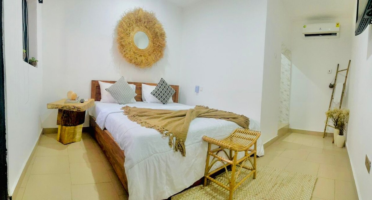 這間設備精良的行政單臥室公寓配有大廳,是您的理想選擇。 這間裝潢精美的公寓配有加大雙人牀、安裝的熱水器、沙發、衛星電視頻道、辦公桌、冰箱、空調、廚房、24小時房間清潔服務、24小時免費WiFi等。 這間公寓位於阿克拉的魏亞,有一個寬敞的大院,您可以在那裡舉辦您的活動。 非常適合情侶或單一。 立即與我們預訂部分:)