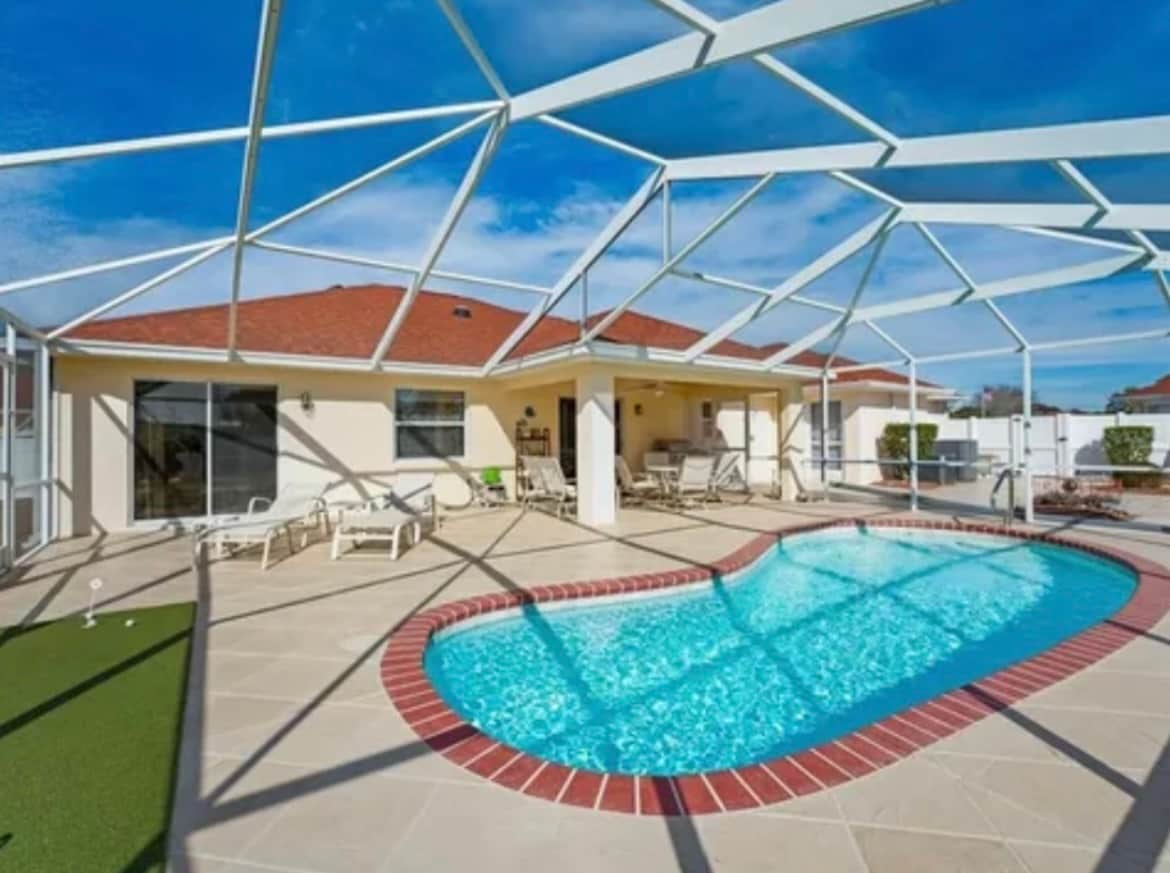 Our newest 5 Star ⭐ listing with a heated swim spa (additional fee) & golf cart in the heart of Spanish Springs minutes from everything you’ll need. Enjoy the town squares, live music, bars, golf and much more 🎶 The home has a dipping pool/spa that has swim jets that allows you to swim against for exercise. Enjoy the outside courtyard with a BBQ and patio furniture Home in the heart of The Villages, a 7 min golf cart ride from Spanish Springs, 15 min from Sumter Landing, Brownsville-30min