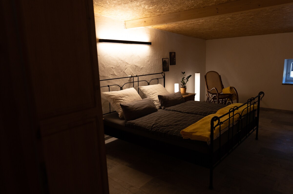 在這間 60 平方公尺的公寓中,您可以找到度假所需的一切。1 張雙人床 + 1 張沙發床,最多可容納 4 人 - 房子前面有停車位 步行幾分鐘即可抵達森林,在 588 公尺高的米歇爾斯山 (Michelsberg) 上,您可以向各個方向徒步旅行。 開車半小時即可抵達紐堡賽道、阿爾河、魯爾湖或布呂爾幻想樂園。 距離購物中心 10 公里。 歡迎與狗一起入住。