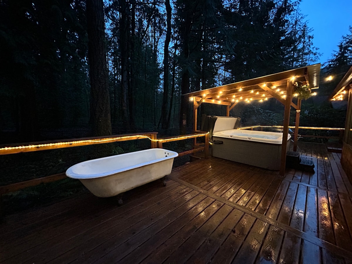 我們舒適、寵物友善的小木屋已經從上到下進行了改造。它有一個開放式的樓層平面圖,閣樓可舒適地睡2人,下方有折疊床,適合2個單人床。 Sandy Ridge Trail就在附近,Wildwood Park就在對面,Mt Hood開車15分鐘即可抵達。靠近一些很棒的餐飲店。我們最近新增了一個爪腳浴缸,提供熱水,讓您在戶外享受愉快的浸泡!