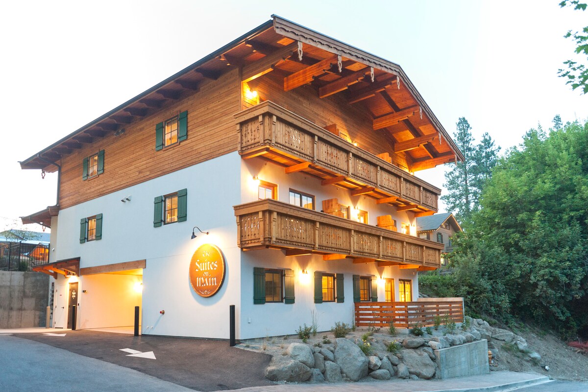 This 1-bedroom unit at The Suites on Main is uniquely located in the heart of town, while also providing an easy escape to Barn Beach and the Wenatchee River. Park your car on site at this private self-entry building. Walk to your destinations as you explore town, dine, shop, and enjoy the endless outdoor adventure in the area. This 7-unit boutique hotel embraces the town's Bavarian architecture with modern and natural materials on the interior. Enjoy views from your private balcony.