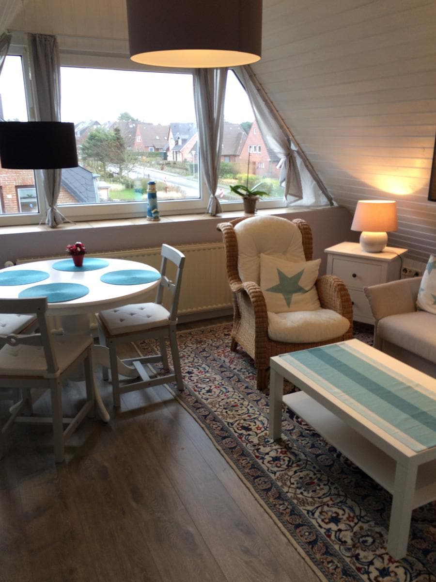 位於2樓的2間房間公寓,明亮、鄉村風格、白色傢俬、實木鋪木地板、設備齊全的廚房、浴室和睡房。 位於韋寧施泰特(Wenningstedt)的中心地帶,毗鄰村莊池塘,附近有很多購物選擇(大廈樓下就有麵包店)和出色的餐廳。 Gosch和海灘都在步行距離內!( 5-10分鐘)。 從陽台的沙灘椅上可以看到Kampener燈塔。 門外就有巴士站。 入住時間為16: 00後。