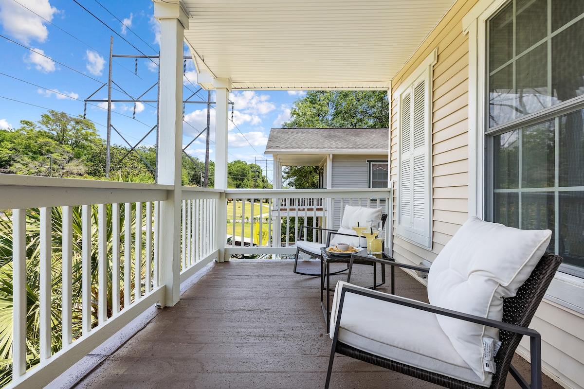 歡迎來到我們別緻的2間臥室+ 2間浴室二樓單位,距離查爾斯頓歷史悠久的漢普頓公園僅幾步之遙。 享受日落單車騎行,步行5分鐘即可抵達市中心最熱門的餐廳,並在前廊欣賞Citadel的景色。 這間時尚的房源配備了設備齊全的廚房、沙灘毛巾、遊戲、嬰兒設備、工作空間、洗衣機/乾衣機、WiFi、街外停車位、自行車等! 在查爾斯頓最令人嚮往的社區體驗當地人的生活。