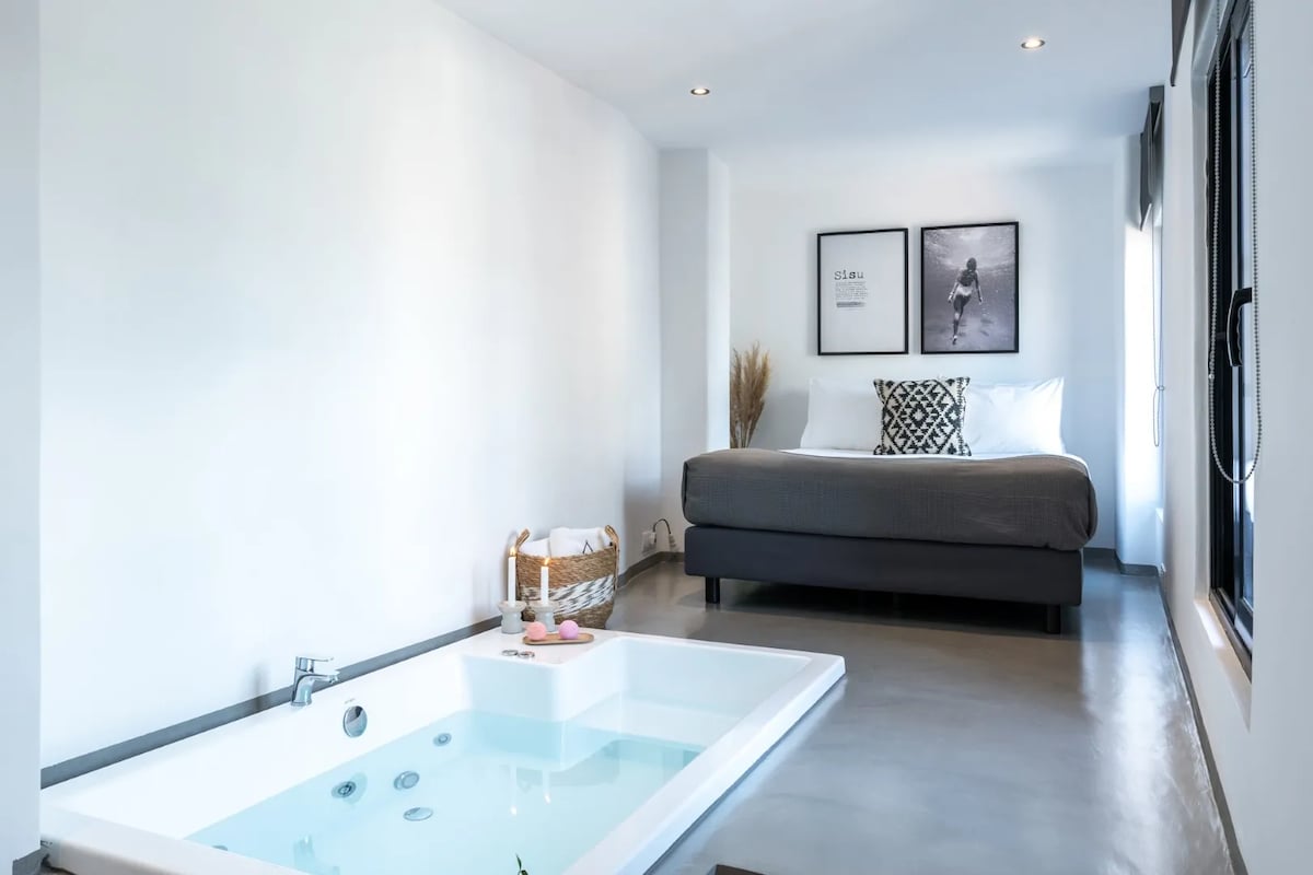 位於歷史悠久的雅典市中心的豪華客房,配有私人露臺和私人戶外按摩浴缸/熱水浴缸。步行3分鐘即可抵達2個地鐵站( Monastiraki和Thiseio )。 安德裏安努街( Andrianou street )據說是雅典最古老的街道,可以追溯到卑詩省時代。 這裡就在古老的Agora對面,是歷史、文化、購物、美食愛好者的完美去處。 步行3分鐘即可抵達Ermou ,步行10分鐘即可抵達Syntagma廣場。 (希臘國會大廈,更換警衛) ,步行15分鐘即可抵達衛城。