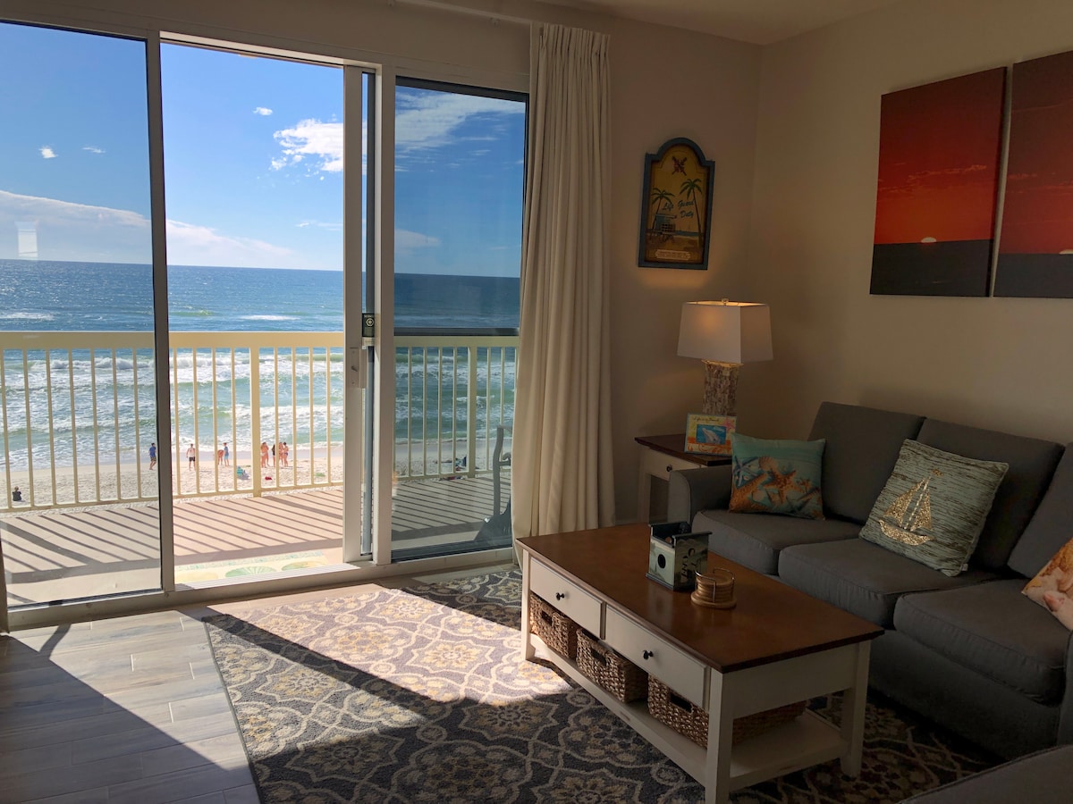至{3月15日至10月31日}的預訂提供免費沙灘椅/雨傘。 在這個寧靜的海濱隱蔽處放鬆。 此房源就在美麗的PCB海灘附近! ! 此單位配有加大雙人牀、全功能廚房和獨立陽臺。 步行即可抵達Gulf Word、Pier Park和許多餐廳。 這裡還有海濱咖啡館和季節性加熱泳池! !