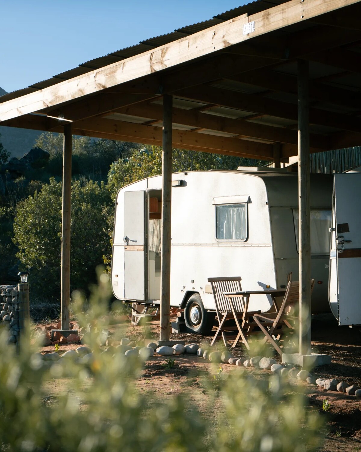 A charming 70’s vintage-style caravan with a small stoep veranda, perfect for a unique countryside stay. Enjoy a cozy, nostalgic atmosphere with your own private ablution facility (shower and toilet). Set on a peaceful farm estate near Langebaan, where nature and wildlife are part of the experience. Please note: a separate venue is on the property, so occasional light event sounds may be heard during permitted hours.