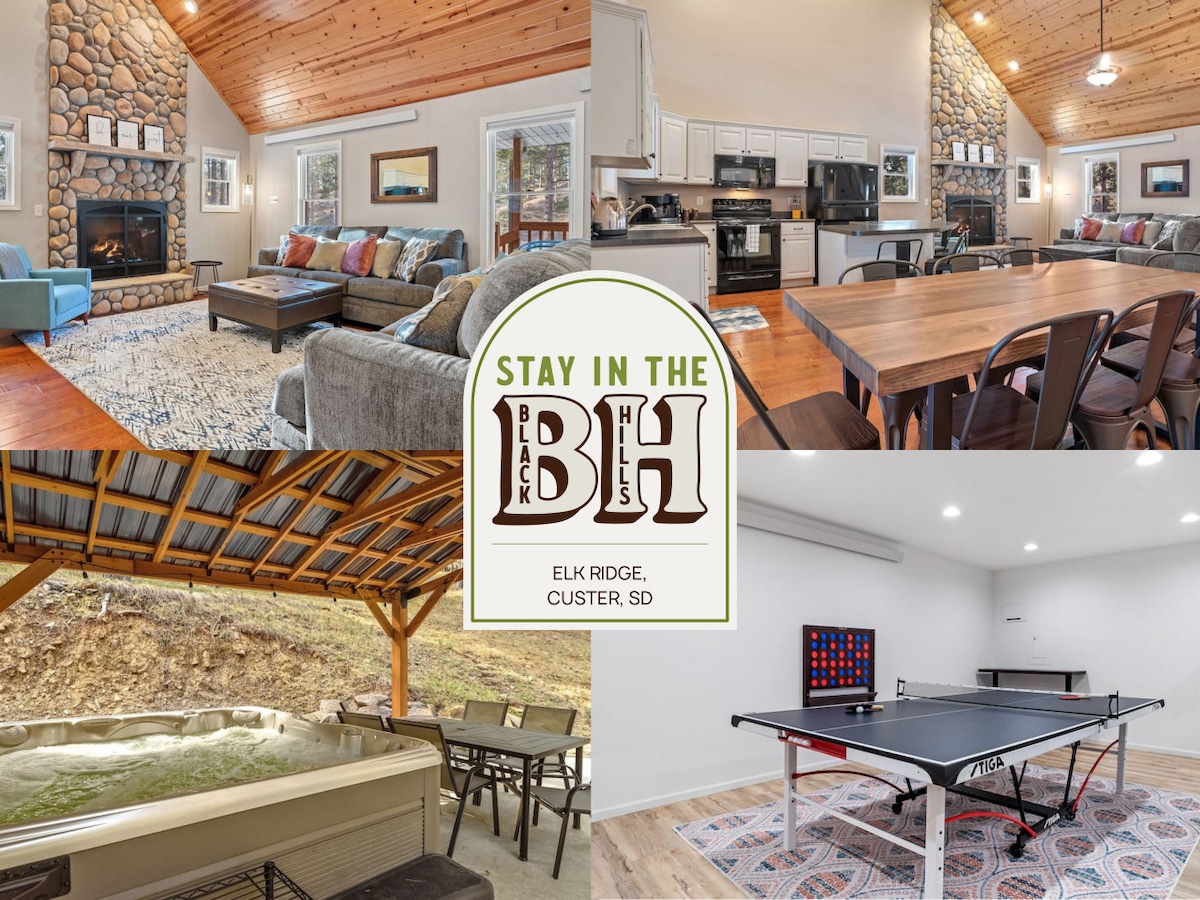 想像一下,自己在Elk Ridge安靜祥和的黑山森林中。森林的寧靜和溫暖的松樹味道會立即帶您回到大自然。這間五臥室三浴室小木屋坐落在一個僻靜的房源上,靠近(6英里)南達科他州最受歡迎的景點之一珠寶洞國家公園(Jewel Cave National Park)。 大型私人後院、涼亭和大型熱水浴缸,戶外空間充足。