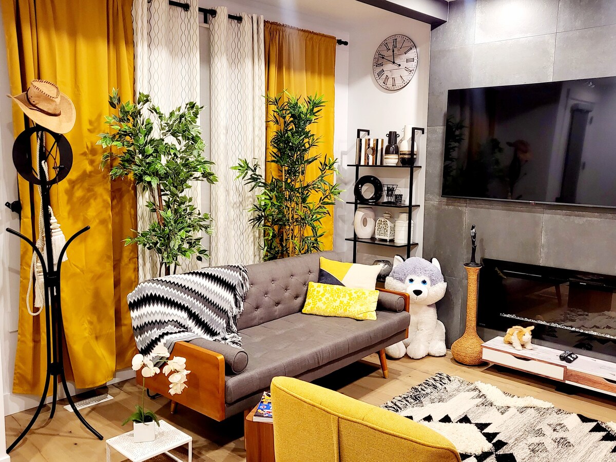 來愛德蒙頓市中心享受獨特的淨零體驗。距離LRT、羅傑斯中心和市中心僅幾步之遙。 騎自行車15分鐘即可抵達埃德蒙頓河谷步道系統、皇家亞爾伯塔博物館和這座令人驚嘆的城市提供的許多其他體驗! 享受您自己的私人寵物/家庭友好型房源,為您的住宿提供各種豪華設施。 靠近當地學院和大學,適合家庭遊客! 套房旁邊的街道有免費停車位。