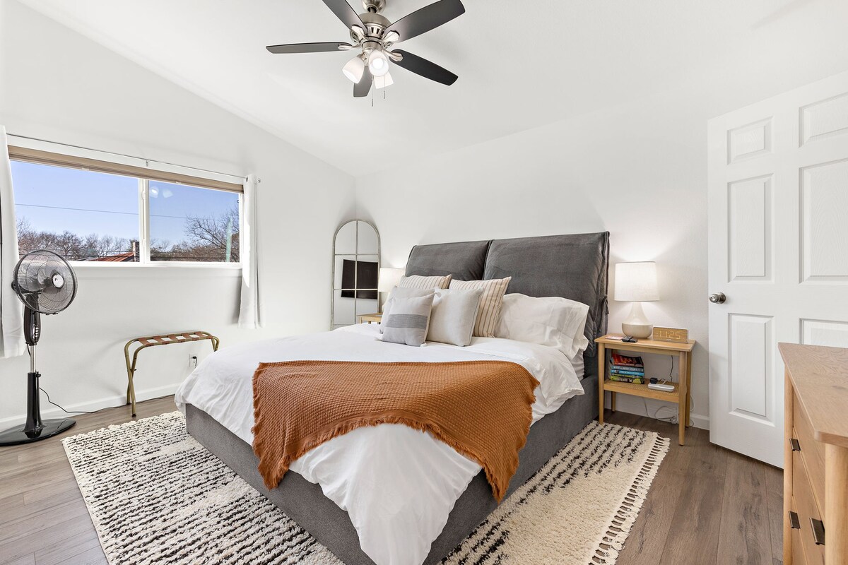 Our light-filled casita is located in a charming quiet neighborhood just west of downtown. Stand alone house with an open layout. 14 ft vaulted ceilings and tall windows give a spacious feel. Walking distance to a neighborhood coffee shop, grocery store, popular restaurants, and shops!