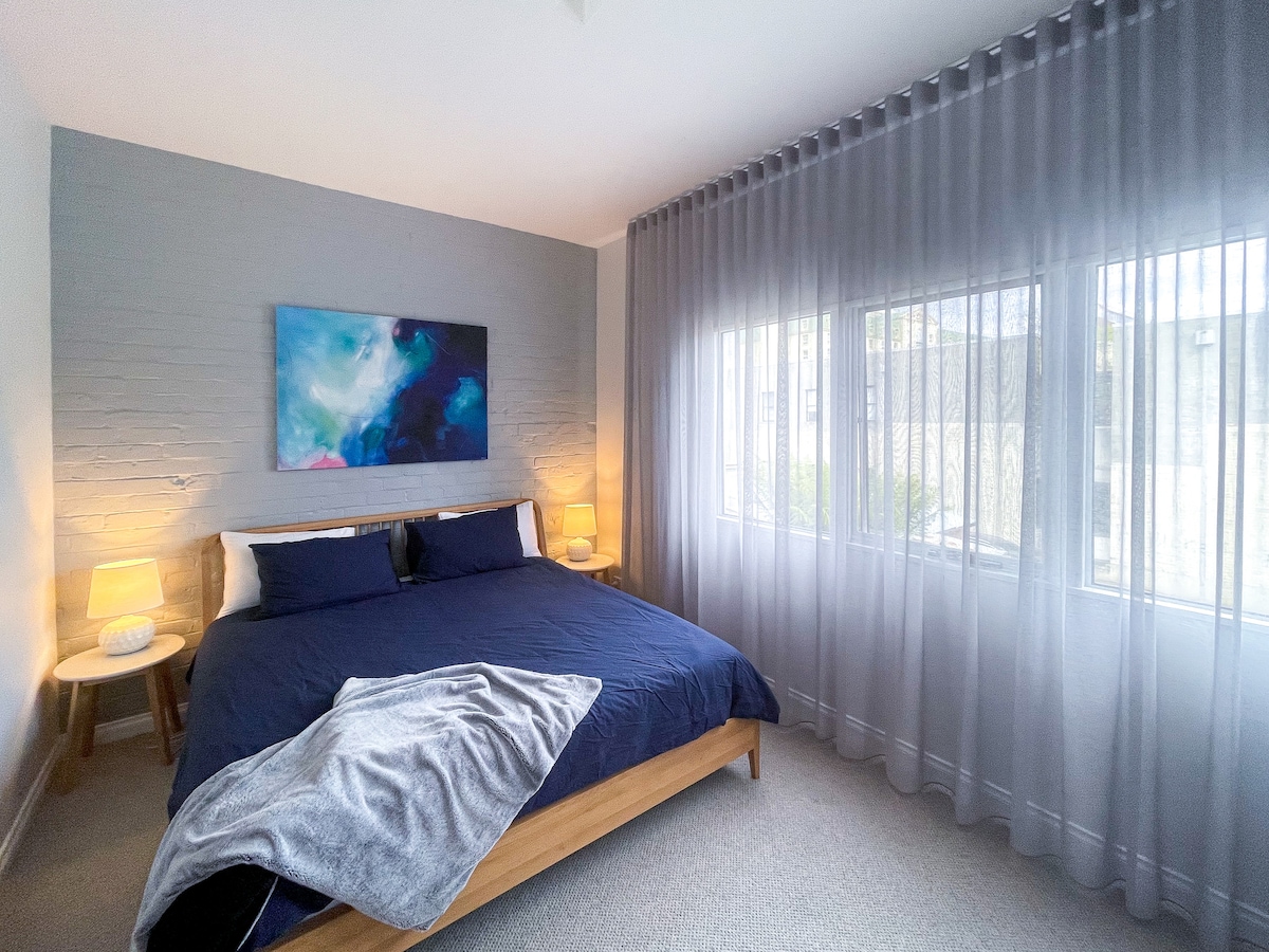 一間時尚的單臥室單位,配有現代化的廚房/浴室和私人花園。 步行即可抵達Cataract Gorge Reserve,步行即可抵達中央商業區,距離機場12公里。 免費WiFi和24小時密碼鎖入住。 配有優質床單的大床。 街外泊車位、可欣賞灌木叢景觀的私人露台。 設備精良的廚房、咖啡機、暖氣/空調、Netflix、洗衣機/乾衣機。