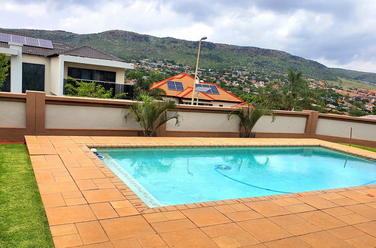 Our guest suite accommodates only one person. It's ideal for anyone needing a quiet time, adventure or just clean air! Our home is on Mountain of Faith, along hiking trails & vibrant natural life. World heritage site Maropeng Cradle of Humankind is 15 minutes away. Neighbourhood has activities including helicopter tours, hot air ballooning & spas. The studio unit is fully equipped. When you're not out exploring the great outdoors, enjoy indoor entertainment on TV or cuddle with a book.