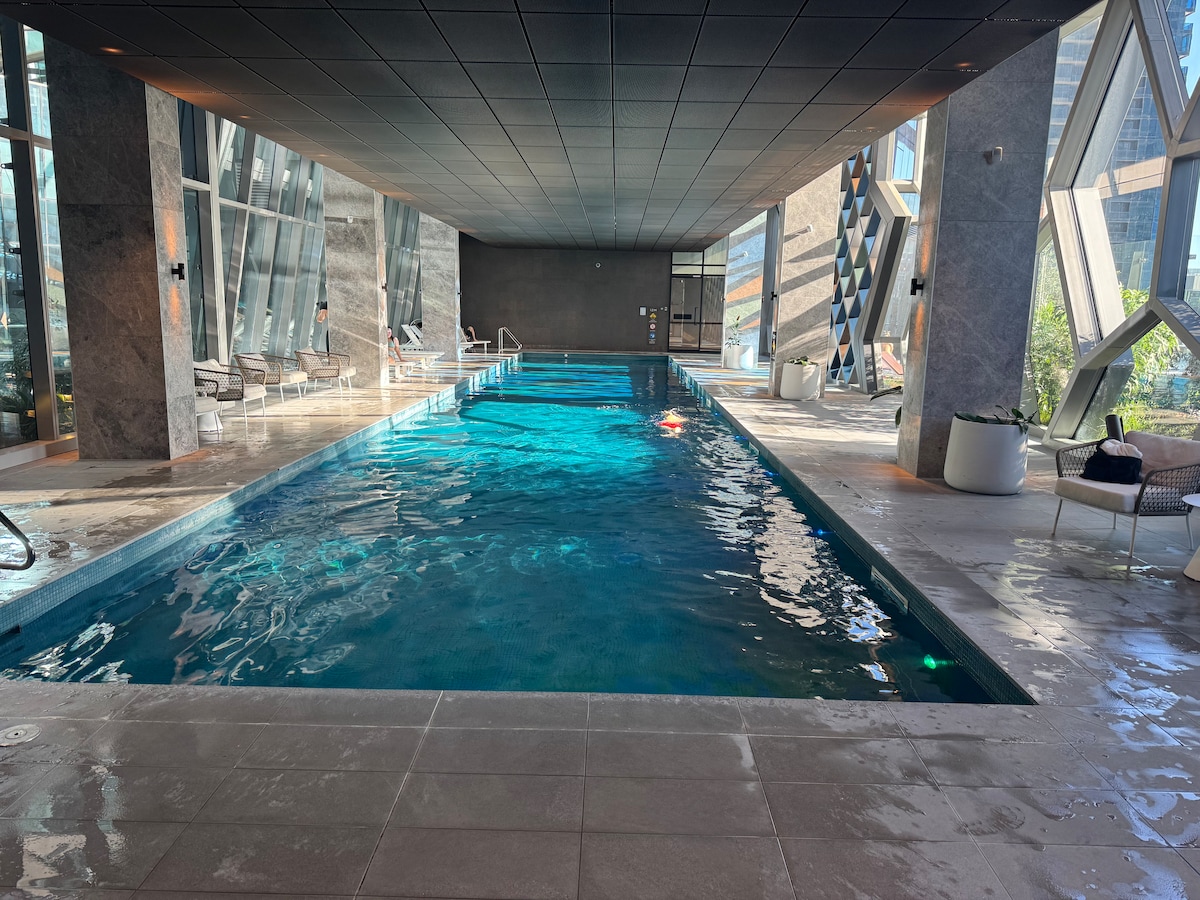 豪華高層公寓,配有加大雙人床、泳池和健身室