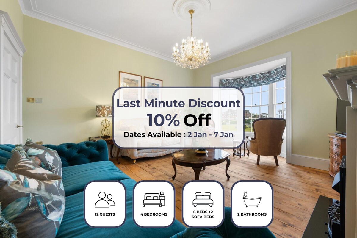 A luxurious 2-bedroom Georgian apartment, meticulously renovated with an emphasis on comfort and style. Just a 1-minute walk to the sea, with restaurants, shops, and amenities nearby. Enjoy sea views from the bay window or relax in the private garden with outdoor dining and hot tub. Less than 20 minutes from Goodwood and perfect for family activities. Nespresso machine Central & peaceful location Netflix & Disney+ Elegant period features Hot tub & garden dining Experience packages.