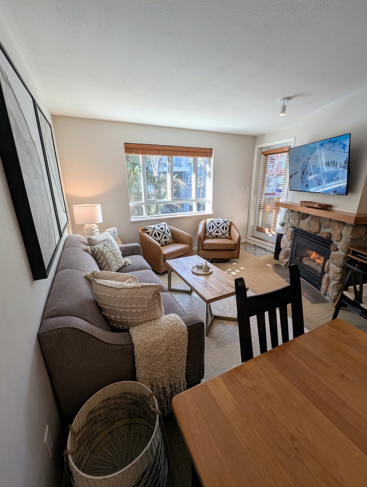 歡迎來到您的山間綠洲。 步行1分鐘即可抵達黑梳滑雪纜車! 我們的現代化公寓是明亮、寬敞的1間臥室,窗戶環繞,可欣賞完美的樹木和山景。 在廚房餐桌上喝咖啡時,抬頭就能看到惠斯勒山! 套房設備齊全: -加大雙人牀 -沙發牀 -全廚房 -按摩浴缸 - Keurig Bose喇叭 -中央冷氣- 2025年7月升級 大樓設有健身室、洗衣房、泳池和室外按摩浴池。
