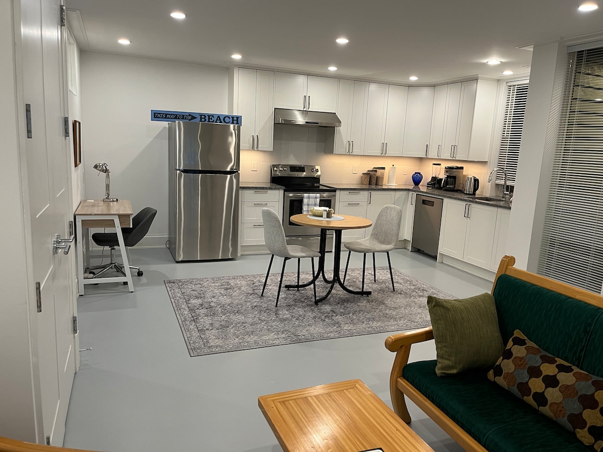 Licence26072;Registration#H686681710 Central located independent suite has a separate entrance from the house. 9mins walking distance to bus station, 15 mins walking to beach, 12 mins walking from shopping center. This suite includes 1 bedroom with 1 QUEEN bed; 1 living room with a leather sofa, TV with Netflix, and small kitchen; 1 bathroom. Free WIFI, coffee and tea, iron, hair dryer, shampoo & body washer, Mirror. Keyless locker. 1 parking on drive way Coin laundry is 4mins driving away.