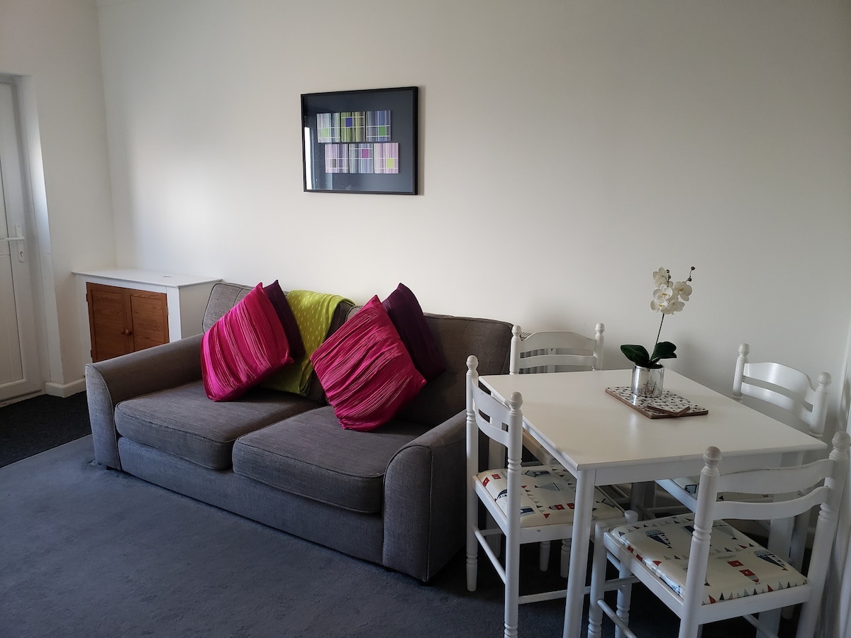 舒適的獨立單間公寓,但與我們位於紐波特郊區的家庭住宅分開。步行20分鐘即可抵達市中心和當地設施。步行10分鐘即可抵達歷史悠久的卡里斯布魯克城堡,並在周圍地區漫步。我們在巴士路線上。 私人出入房源和免費路邊停車位。 Studio 114 提供雙人臥室、浴室、水壺、烤麵包機、微波爐和迷你冰箱、電視、免費 Wi-Fi 和小露臺空間,備有桌椅。