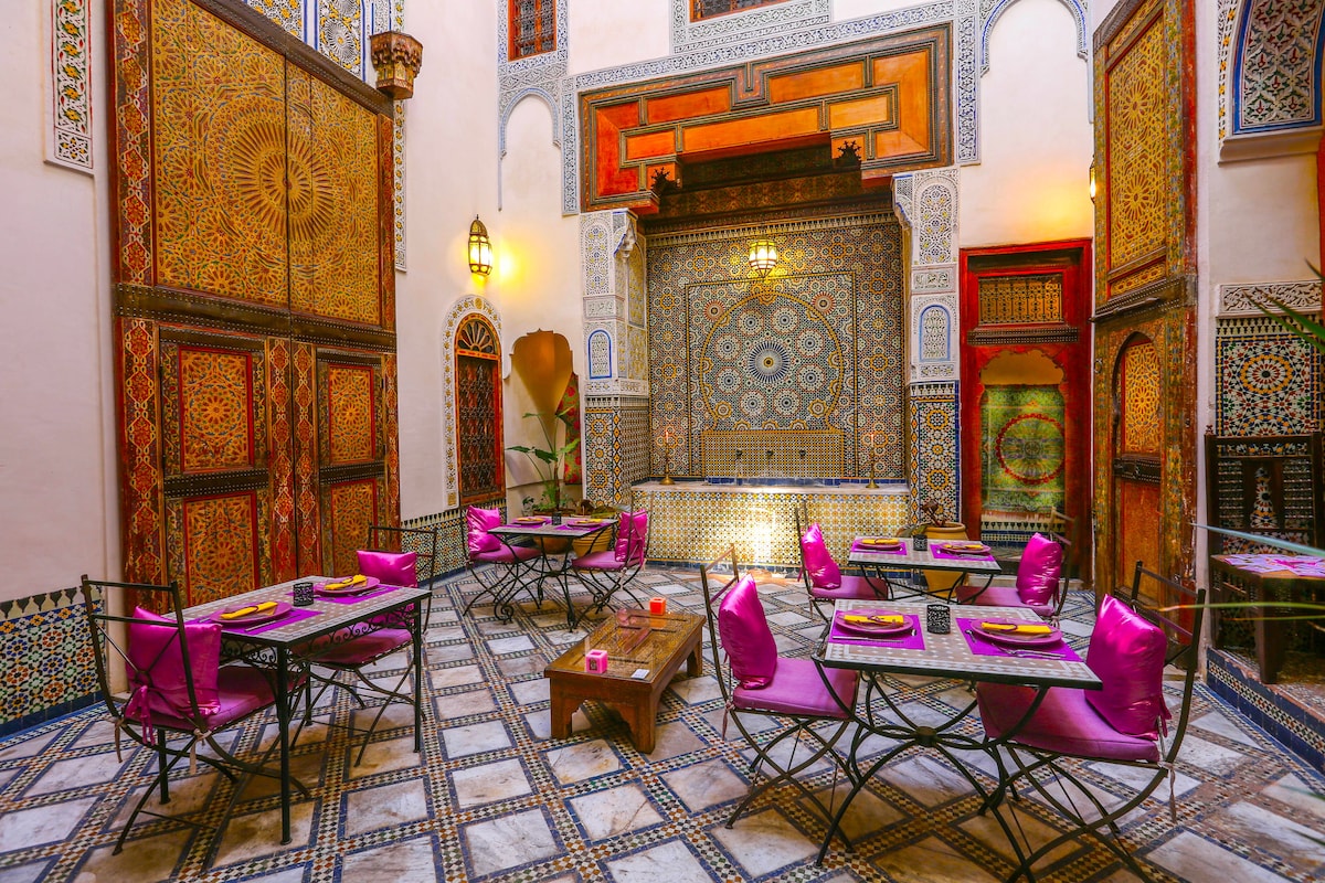 歡迎來到我們位於費斯舊麥地那的迷人且位於市中心的Riad。 享受所有可愛的公共區域,包括三間客廳、泳池、後院和屋頂景觀。 所有房客每天早上都可以免費享用歐陸早餐。如需及時預訂,可享用午餐和晚餐,價格為$ $。