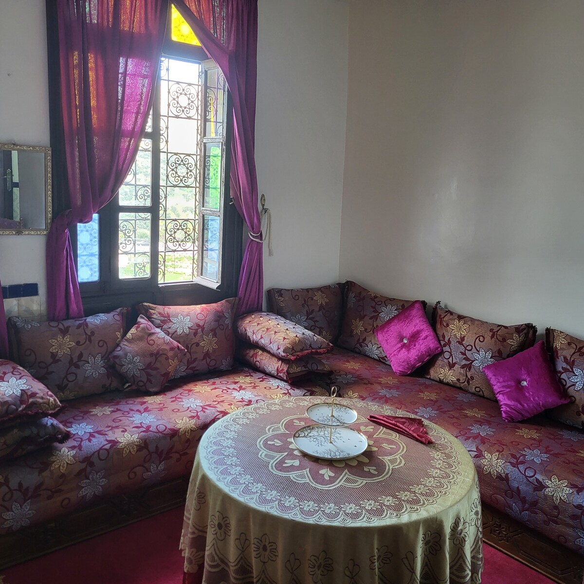 這個公寓是典型的摩洛哥Mesrya。它已傳統地修復,並設有設備齊全的廚房、屋頂露臺、浴室、2間臥室、客廳和露臺。 位於一樓,有自己的獨立入口。 公寓位於Fes Medina的Batha ,靠近主街Tala Sghrira。餐廳、小商店、麵包店都在附近。這是一個安靜的區域,以其安全性而聞名。 這是沉浸在Fes正宗生活的理想去處。