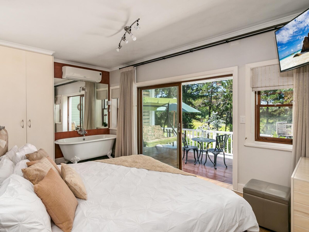 海景•海景•新裝修。 只需20步即可抵達荒野的金色沙灘,我們的45平方米海灘平房讓你從床上欣賞海浪,浸泡在漩渦浴缸中,並在沙丘邊緣的燒烤爐上烤晚餐。 非常適合情侶尋找私人自炊式度假屋,配備高速WiFi、寬敞花園和日落海灘步行。