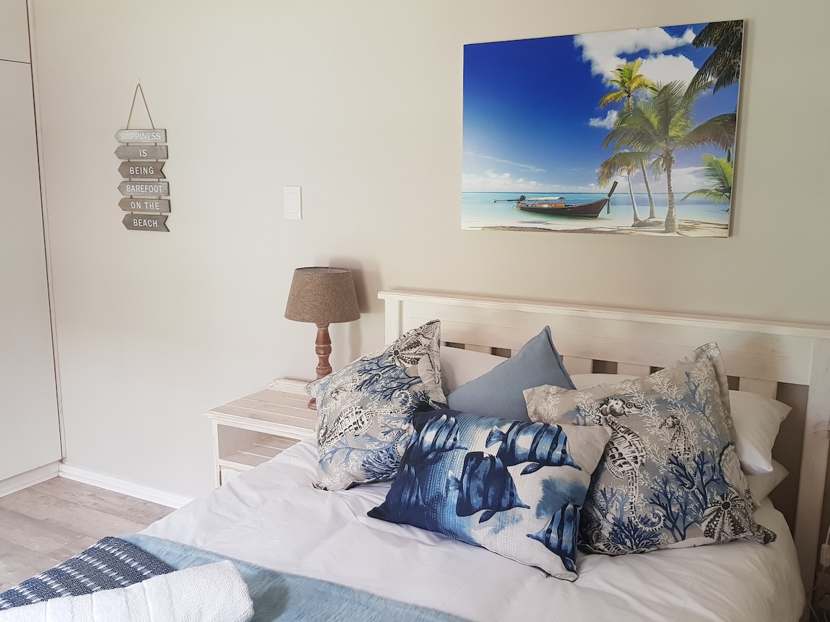 Blue Shutters will provide our visitors with a private, serene area to unwind either after a busy day at work or sight seeing. In the heart of the Garden Route which is well known for its natural beauty, wide open beaches and fun activities. This self catering unit has all the luxuries of home including comfortable bedding for 3, two bathrooms, Wi-Fi, fully equipped kitchen and safe parking. We are centrally located - 5 minutes from the Garden Route Mall and 15 minutes from Victoria Bay.