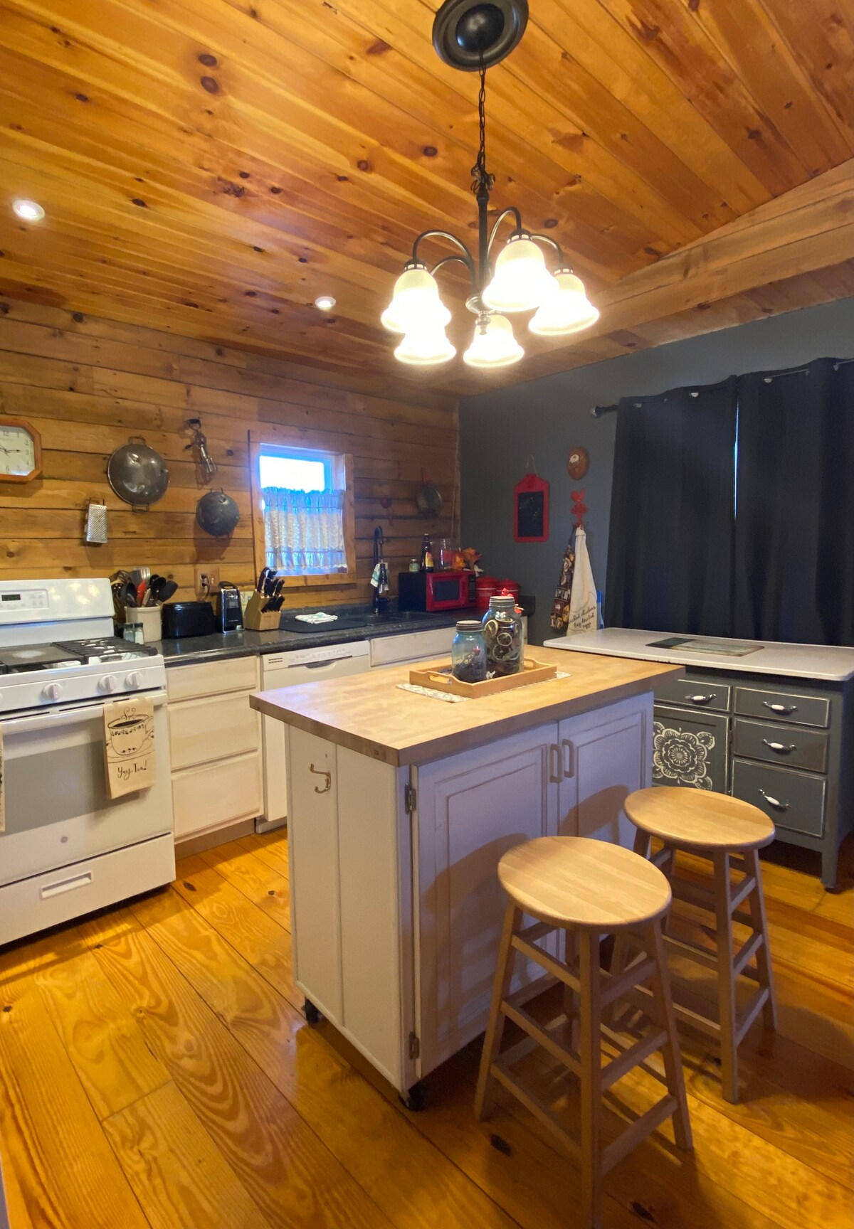 床/無床單 淋浴間/無毛巾 廚房/水槽迷你冰箱,無爐子,室外烤架、火坑和鑄鐵。 提供餐具、銀器和烹飪用具。 您需要攜帶的物品:床單、枕頭、毛巾、碗碟抹布和個人衛生用品。我們會提供足夠的垃圾袋、衛生紙、洗碗精,讓您在承租人負責後開始使用。我們有州認證的烘乾木柴出售,每捆6美元。咖啡壺可使用咖啡粉和k杯。4張草坪椅。