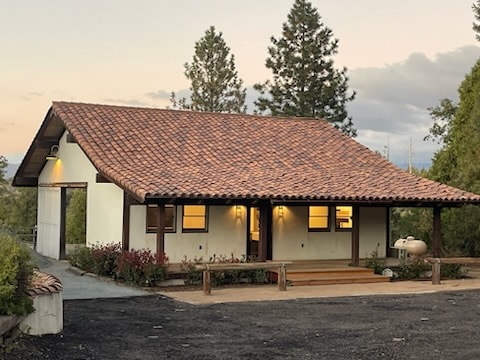 You’ve traveled all this way, why stay in town? Enjoy long ranging views, privacy & quiet.You’re on one side of our organic garden & orchard, we’re on the other. This guest house is designed with your needs in mind, complete with a full kitchen, laundry, and claw foot tub. We built it to exceed all energy efficiency standards, so it’s cozy in the winter, and cool in the summer. We are a CA certified “Green Business”. We strive to promote a culture of energy efficiency and sustainability.