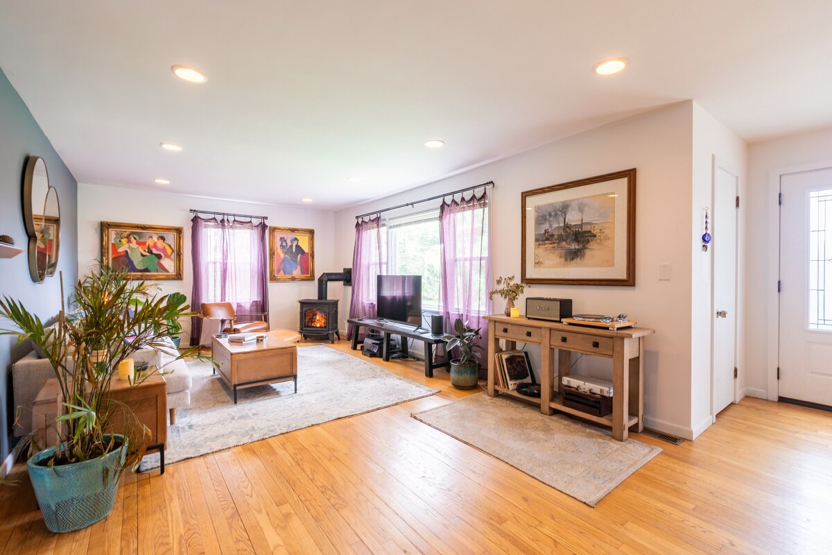 在靜謐的鄉村景色中醒來,享用新鮮出爐的貝果。 這間迷人的小屋位於巴克斯郡(Bucks County)的中心,周圍有風景如畫的河畔小鎮和連綿起伏的山丘。 第一天早上,享用新鮮貝果送到家。 沿著特拉華河開車5分鐘即可抵達法蘭西鎮,探索和用餐。 靠近New Hope、Lambertville和Doylestown。