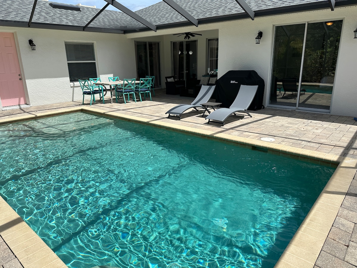 我們與您分享我們的夢想家園!此房源提供冬季天堂最好的開放式佈局之一。非常好的開放式廚房,配有花崗岩檯面、不鏽鋼電器和許多電器。大型電視房配有連接到Lanai/泳池區的Samsung智慧65吋電視。必須親眼看看才會相信!提供許多圖片,讓您的心靈感到驚奇。 我與您的互動將取決於您。我們有密碼鎖,方便您使用。不過,我會隨時為您提供協助!