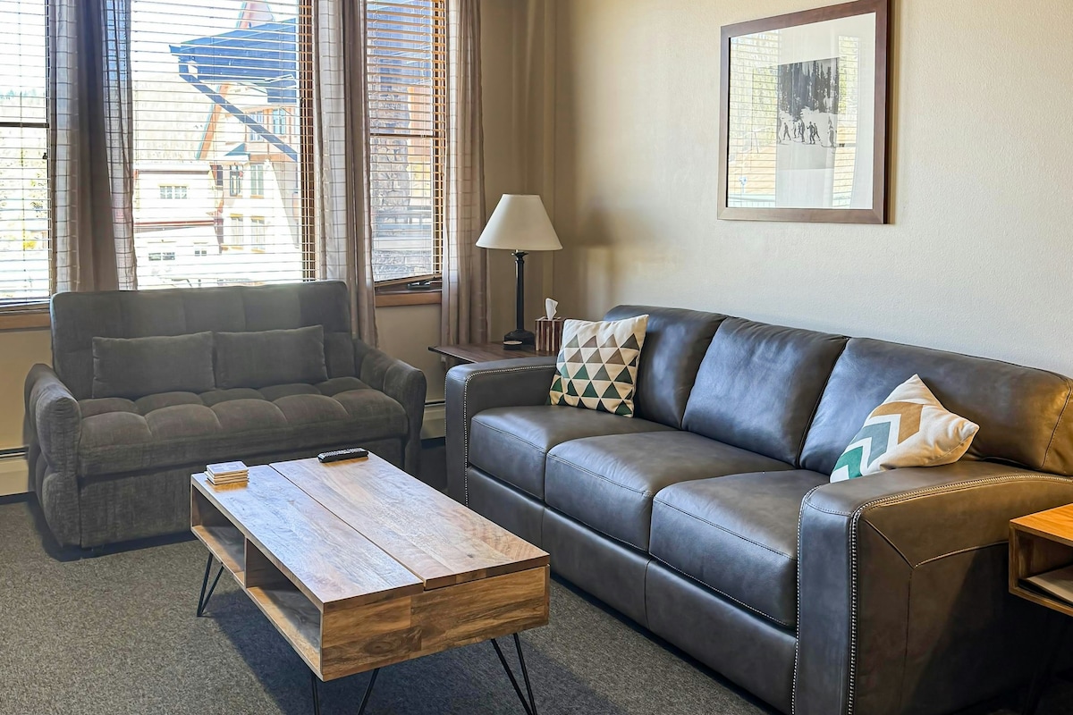 Zephyr Lodge的超大1床,WP唯一的直達滑雪場的公寓。比其他1床大20%,可欣賞山坡和村莊的景觀。 睡房設有加大雙人床+客廳設有大雙人床。 設施:窗口式冷氣機、地面滑雪儲物櫃、室外熱水浴缸和健身中心。 一個私人地下停車位(夏季免費/冬季30美元/天)。 靠近星巴克、滑雪租賃、商店和餐廳!