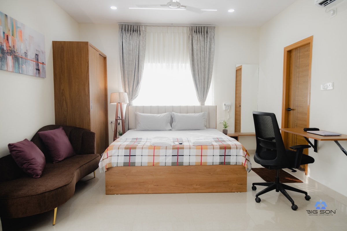 位於Prime Gachibowli, Nanakramguda的高級2BHK,非常適合IT專業人士。 寬敞、設備齊全的公寓,位於安全的門禁社區,靠近微軟、亞馬遜和Wipro等主要IT中心。 提供高速WiFi、專屬工作空間,以及專為舒適和提高工作效率而設計的設施。 非常適合尋求便利和高級生活的商務旅客,位於海得拉巴頂尖科技社區。 工作、放鬆、再來一次。你在海得拉巴的完美商務住宿。