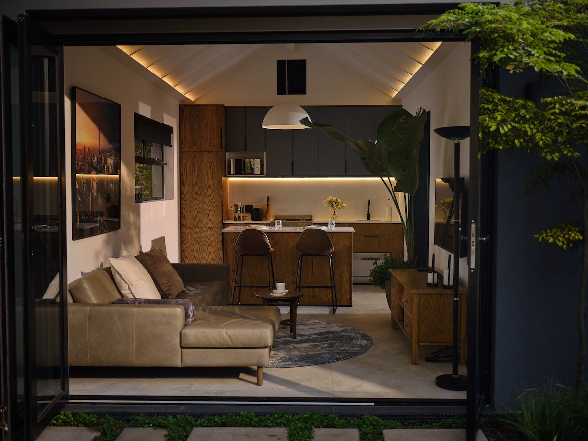 Escape & unwind at this extraordinary home. Reminiscent of a Grand Design set location - nestled on the ridge with panoramic views of the city skyline & jacaranda treetops of one of Pretoria’s oldest suburbs. This home combines elements of steel, stone and glass. The relaxing setting is furnished with natural textures, beautiful decor items & Egyptian cotton bedding. Also 100% solar. A truly tranquil getaway inside Pretoria-minutes from the Gautrain, restaurants, embassies & vintage shopping.