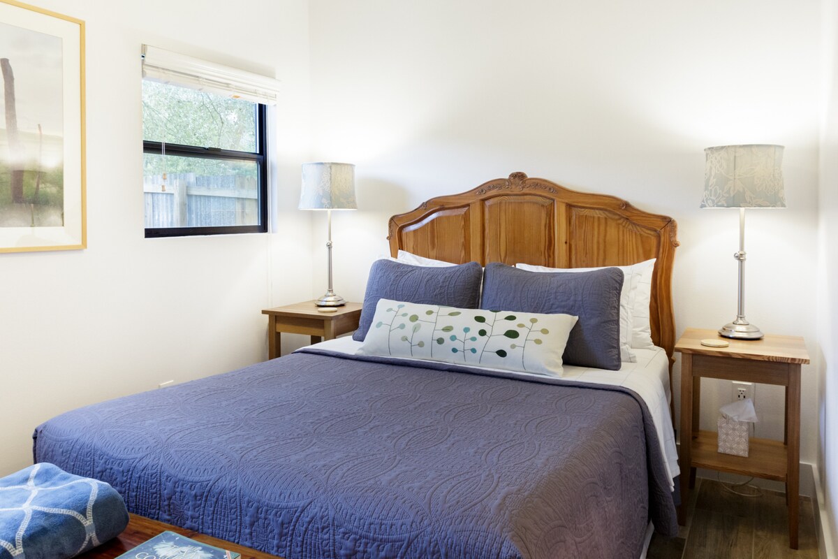 這間設備精良的單間公寓距離婚禮和家庭團聚場所(Cypress Falls活動中心)、Cypress Creek公共通道、高爾夫球場、Wimberley Trade Days和餐廳/酒吧不到5分鐘。它位於藍洞公園(Blue Hole Park)和雅各布井(Jacob 's Well)之間,這是德克薩斯州最受歡迎的泉水游泳洞之一。坐落在一個私密、安靜的社區,單間公寓不與主住宅共用牆壁。 乾淨、放鬆的地方,適合重新度假。
