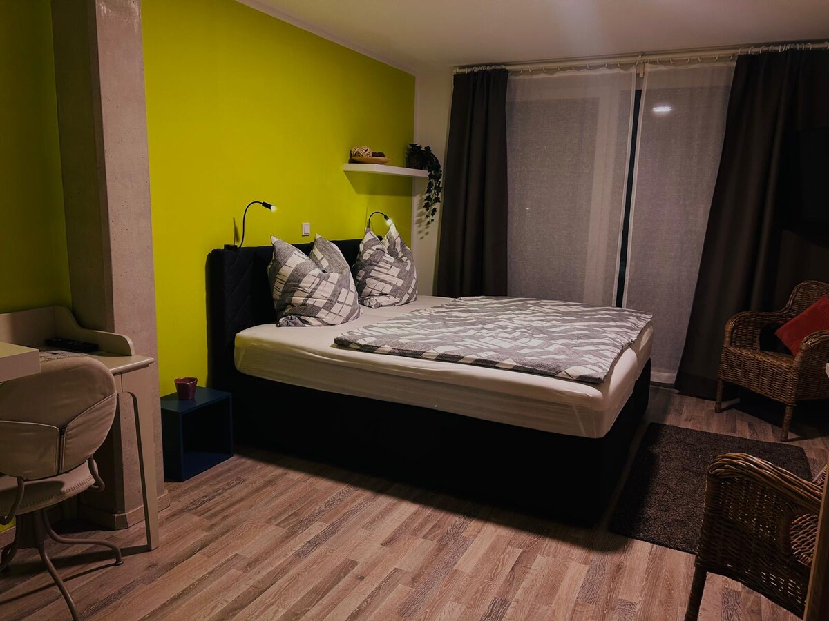 假期、展覽會、商務差旅、小型攝影(僅限預約)、週末度假......您喜歡與眾不同的體驗嗎?那麼我們就有共鳴了。全面翻新的 Degenfabrik 為您提供了一個讓時間流逝得更慢的氛圍。有停車位,距離市區、各式餐廳和商店 10 至 15 分鐘,有區域火車連接。運動設施位於房屋後方。 我們在同一棟建築中經營一個藝術畫廊,歡迎參觀。