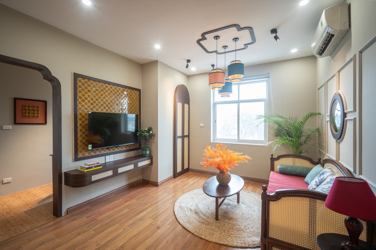 ✨ Dangi Home – 泰河區豪華複式公寓 位於20樓的五彩繽紛的中世紀複式公寓,可欣賞西湖全景。 設備齊全的廚房、配備Netflix的舒適客廳、浴缸和所有必需品,讓您輕鬆舒適地入住。 位置優越 •步行5分鐘即可抵達西湖樂天商場( Lotte Mall West Lake ) –購物、用餐和娛樂 • 距離舊城區15分鐘 • 距離內排國際機場20分鐘車程 • 周圍有咖啡店、餐廳、Winmart和Highlands Coffee