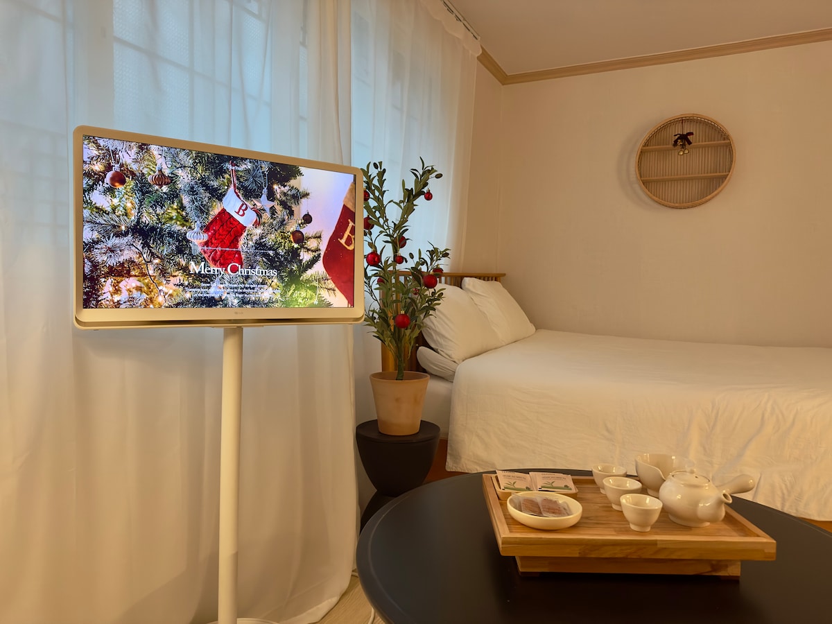 這是一間位於首爾江西區登村洞木洞交叉口附近安靜當地住宅區的2層私人住宿。 附近的車站是木洞站和登村站,乘坐巴士在主要區域移動更方便。 --- 🚎 交通工具 乘坐機場巴士前往仁川國際機場約1小時20分鐘,無需轉車,開車約45分鐘。 開車前往金浦國際機場(濟州國內航站樓)約25分鐘 從弘益大學站到汝矣島漢江公園約需20分鐘車程。 提供付費泊車位(須提前預訂) 🌇 構成元素 包括1張標準雙人床和1張超級單人床 2人基本價格,最多可供5人參與 (額外旅人每人15,000韓元,可提供額外床上用品) 適合家庭旅行、情侶、朋友聚會和商務旅行 🧚‍♀️優惠(提前預訂) 上午9:00 - 10:00 繳付5,000韓元的額外費用後 你可以使用4樓的屋頂花園(靜止巢穴) 1小時。 --- ❗️沒有電梯,你必須走樓梯。