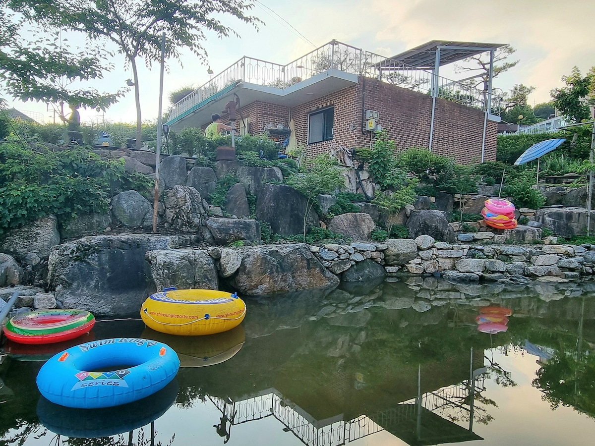 We have spacious Garden with lovely pine trees and seasonal flowers. You can feel healing and relax with our lovely calm garden. We have also small farm growing ingredient fruits. you can pick & enjoy eating for breakfast in summer season. You can take a walk along the riverside path near our house and enjoy water skiing and paragliding. Public transportation is also available. It's a 10 - minute walk from Asin Station on the Gyeongui-Jungang Line. Pick-up from Asin Station is also available.