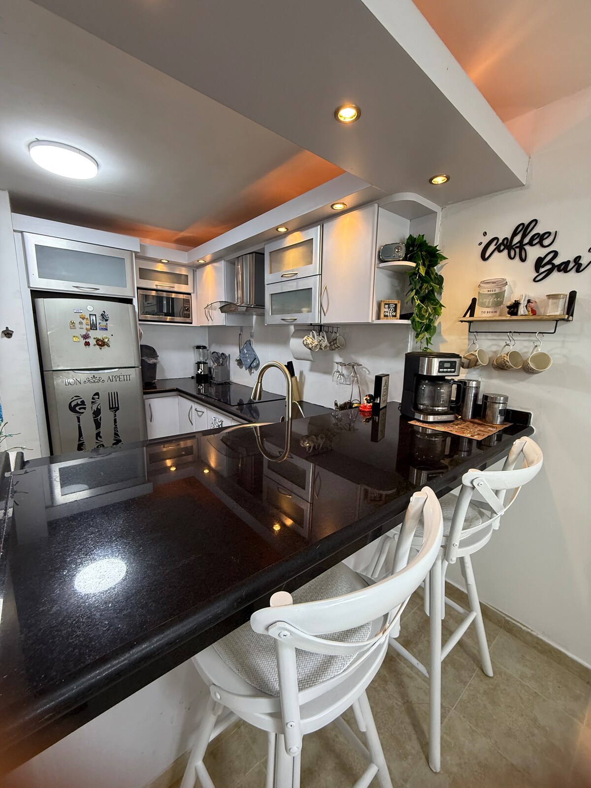 Espectacular PH con terrazas y parrillera privada! 4 habitaciones, 3 camas king, 2 camas matrimoniales, 4 baños con agua caliente, 2 amplias salas de estar. Cocina moderna con concepto abierto, amplio comedor con vista al mar, utensilios básicos. Wi-Fi, aires acondicionados operativos en todas sus zonas. Tanque de agua 15 mil litros, 3 puestos de estacionamiento techados. El edificio cuenta vigilancia privada. Piscina para adultos y niños, tobogan, parrillera.