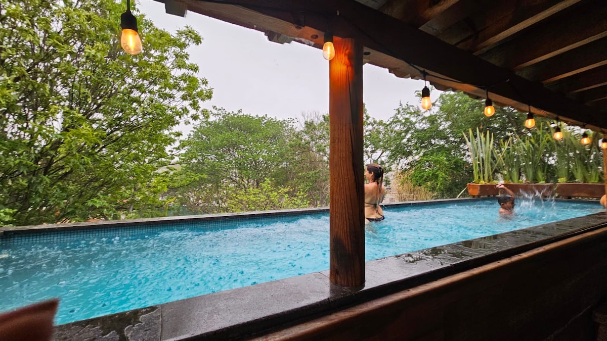 La Cabaña es un alojamiento TOTALMENTE PRIVADO, ideal para tomar un descanso, con espacios para la relajación y momentos románticos. La Habitación en planta alta entre arboles cuenta con balcón con vista al jardín, cama King size, tv, ventilador, baño concepto abierto (ideal para parejas) platos, frigobar, microondas, cafetera. Así como toallas, shampoo y jabon. Jardín, alberca a temperatura ambiente y jacuzzi con agua caliente!