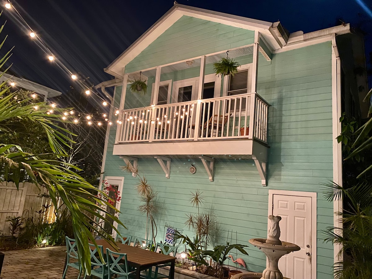 坦帕高地迷人的單間公寓,位於坦帕高地歷史街區。單間公寓可步行/騎自行車前往河畔/Armature Works/Ybor City/市中心/Channelside/Seminole Heights熱點。距離坦帕最好的披薩/啤酒店Lees 's Grocery一個街區。電動滑板車/綠道交通便利。 單間公寓配有小廚房、露臺空間、帶浴缸的全功能浴室、雙人床和沙發床(可轉換為特大床)。如有需要,可提供嬰兒床/兒童床/高椅/額外的嬰兒用品。