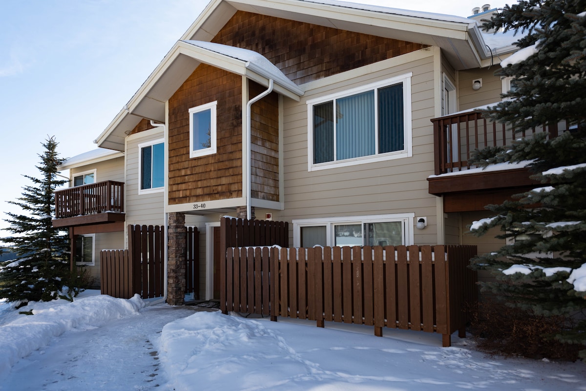 靠近山區的舒適一樓滑雪公寓。 享受兩間臥室的隱私,一間配有一張大牀,另一間配有上下鋪。 廚房配有基本用品。 Hill Condos前往滑雪山很方便,步行即可抵達會議中心和山村( Mountain Village )及其所有設施。 公寓提供無鑰匙入口、藍牙立體聲音響和智慧電視,更不用說孤山的美麗景色了。 面積440平方英尺,距離度假村不到半英裏。