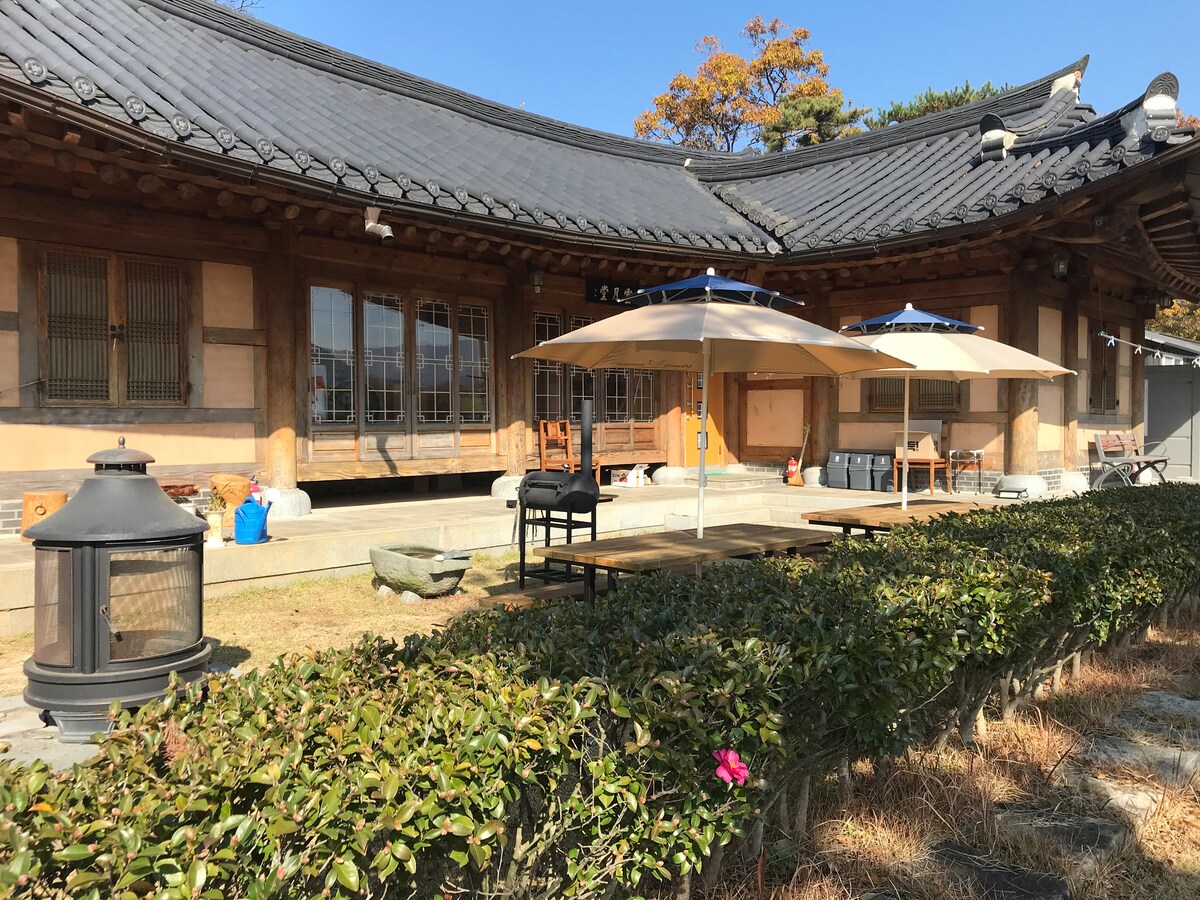 노천탕 한옥독채펜션 넓은마당 확 트인 뷰 최신시스템 힐링 할 수 있는 감성숙소입니다