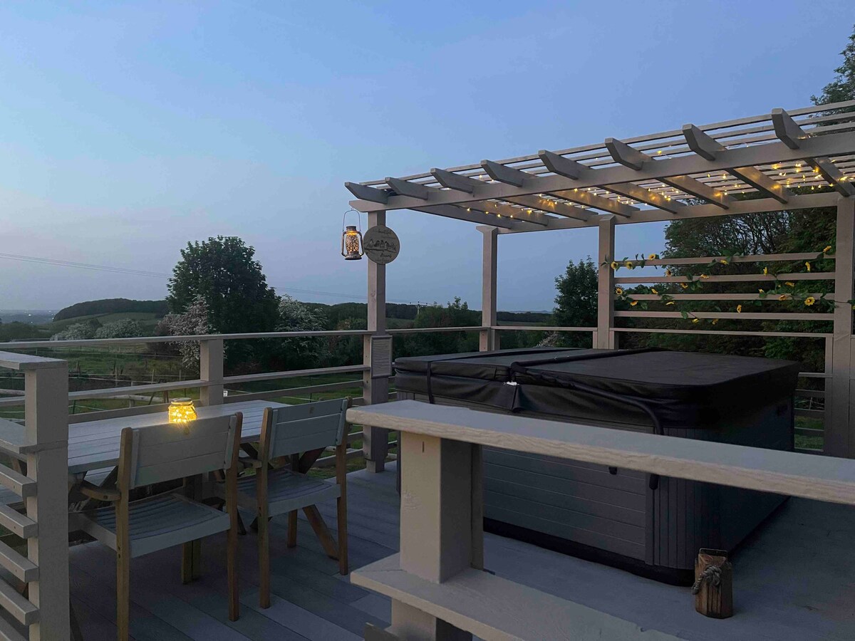 豪華的豪華露營住宿,裝潢精美、舒適的蒙古蒙古包,坐落在德比郡的起伏山丘上。配備私人按摩浴池和電力,是放鬆身心的完美住宿。 在這個美妙的地方與親朋好友重新聯繫,一切都為您考慮周到。您只需帶上食物和飲料,在外面的披薩烤箱烤烤或烹飪新鮮披薩即可。 靠近許多旅遊景點和美食的好去處。